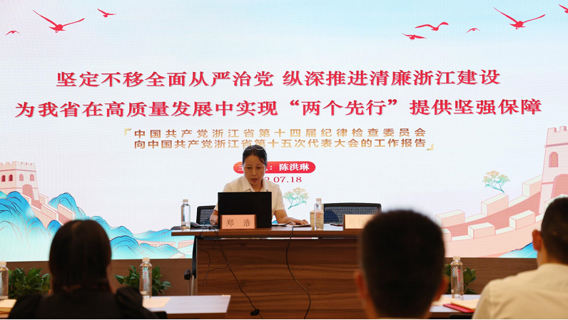 陳洪琳從過去五年的工作回顧、工作體會(huì)以及工作建議三大部分對(duì)省第十四屆紀(jì)律檢查委員會(huì)工作報(bào)告進(jìn)行了解讀,并強(qiáng)調(diào)廣大黨員群眾要深入學(xué)習(xí)貫徹習(xí)近平總書記關(guān)于黨的自我革命的戰(zhàn)略思想,把全面從嚴(yán)治黨向縱深推進(jìn),共同營(yíng)造風(fēng)清氣正的政治生態(tài),為共同富裕先行和省域現(xiàn)代化先行提供有力保障。
